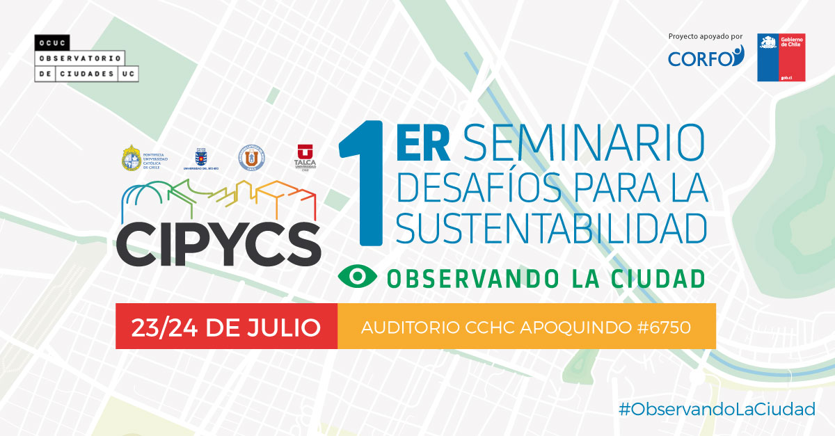 Estamos patrocinando el 1er Seminario Desafíos para la Sustentabilidad: Observando la Ciudad, organizado por el Centro Interdisciplinario para la Productividad y Construcción Sustentable (Cipycs) con la colaboración del Observatorio de Ciudades UC.